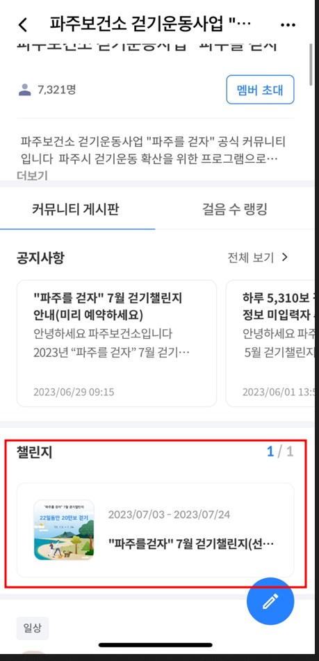 5. 파주를 검색하면 파주보건소 걷기 운동사업 "파주를 걷자" 커뮤니티에 참여해 주세요.