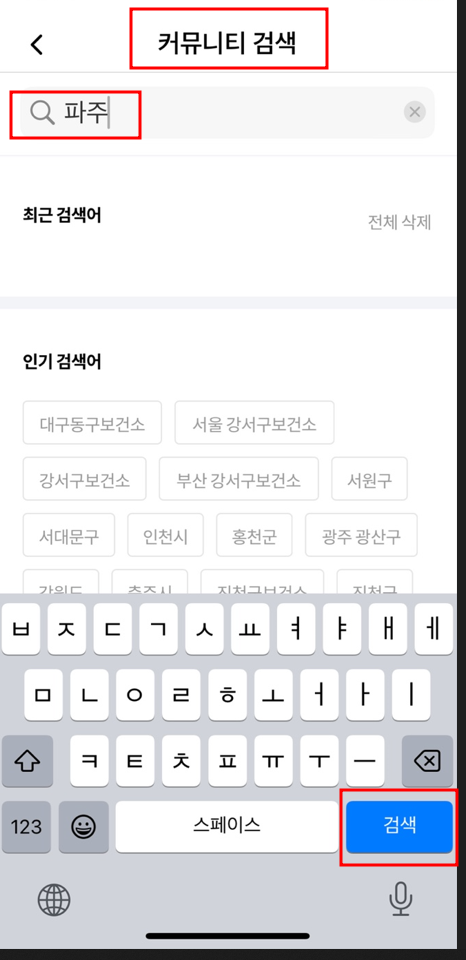 4. 클릭 후, 커뮤니티 검색창에 파주를 검색합니다.