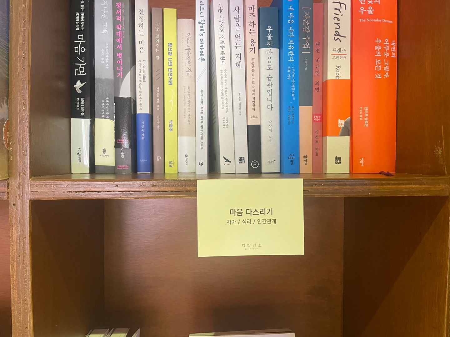 서점은 사실 크지 않은 책방 느낌이에요. 인테리어가 따뜻하게 되어 있어요. 그리고 저는 2층으로는 가지 않았지만 1층에서 카페 주문을 받고 있어요. 2층에 커피를 마실 수 있는 공간이 있어요! 다음엔 2층에서 커피를 마시면서 책을 읽어보려고 해요 ㅎ
