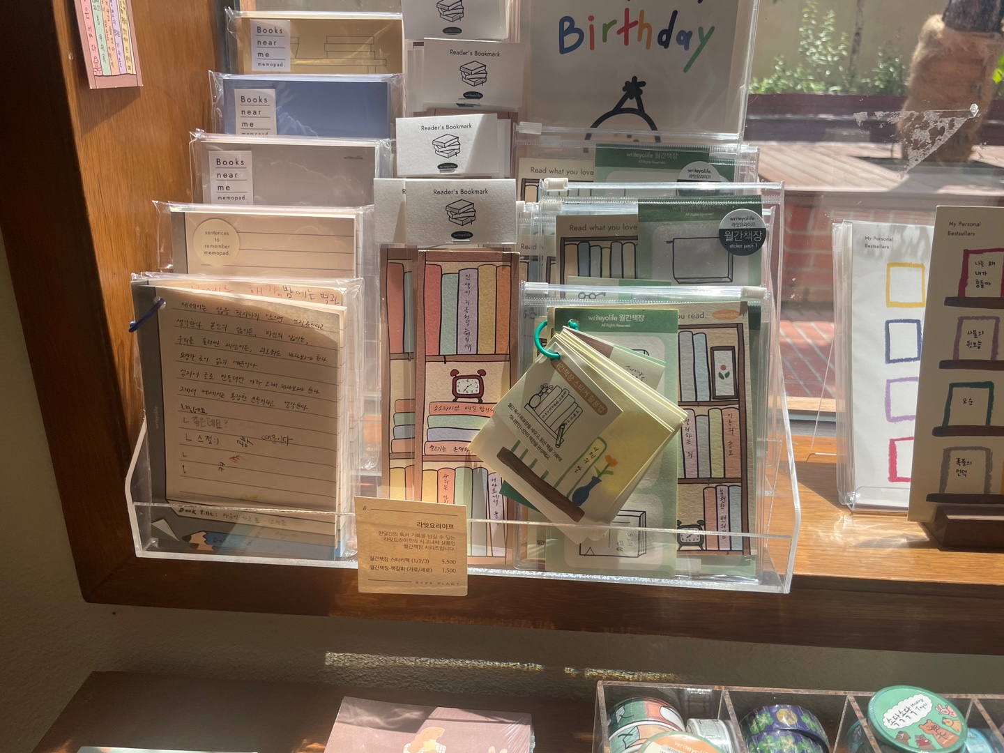 들어가는 입구 쪽에서 오른쪽에 있는 문구들이에요. 책 읽을 때 도움이 될만한 문구들이 아기자기하게 있답니다.