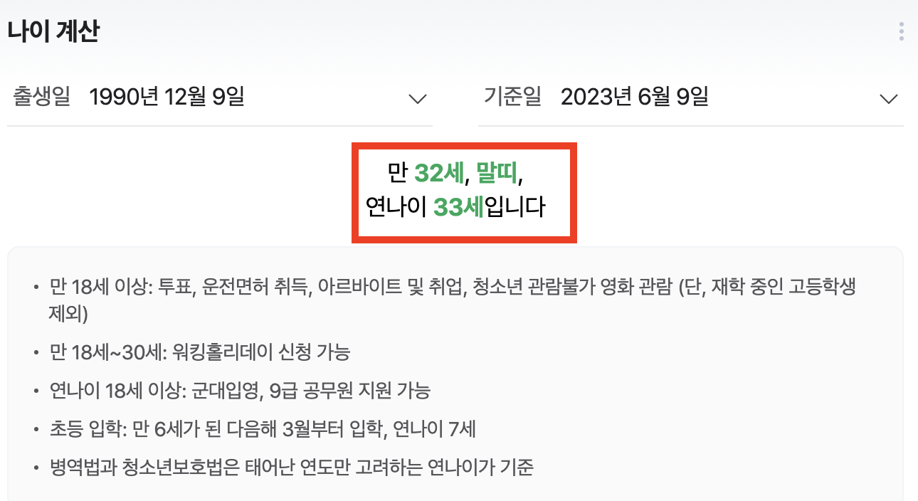 '만 나이' 계산 방법