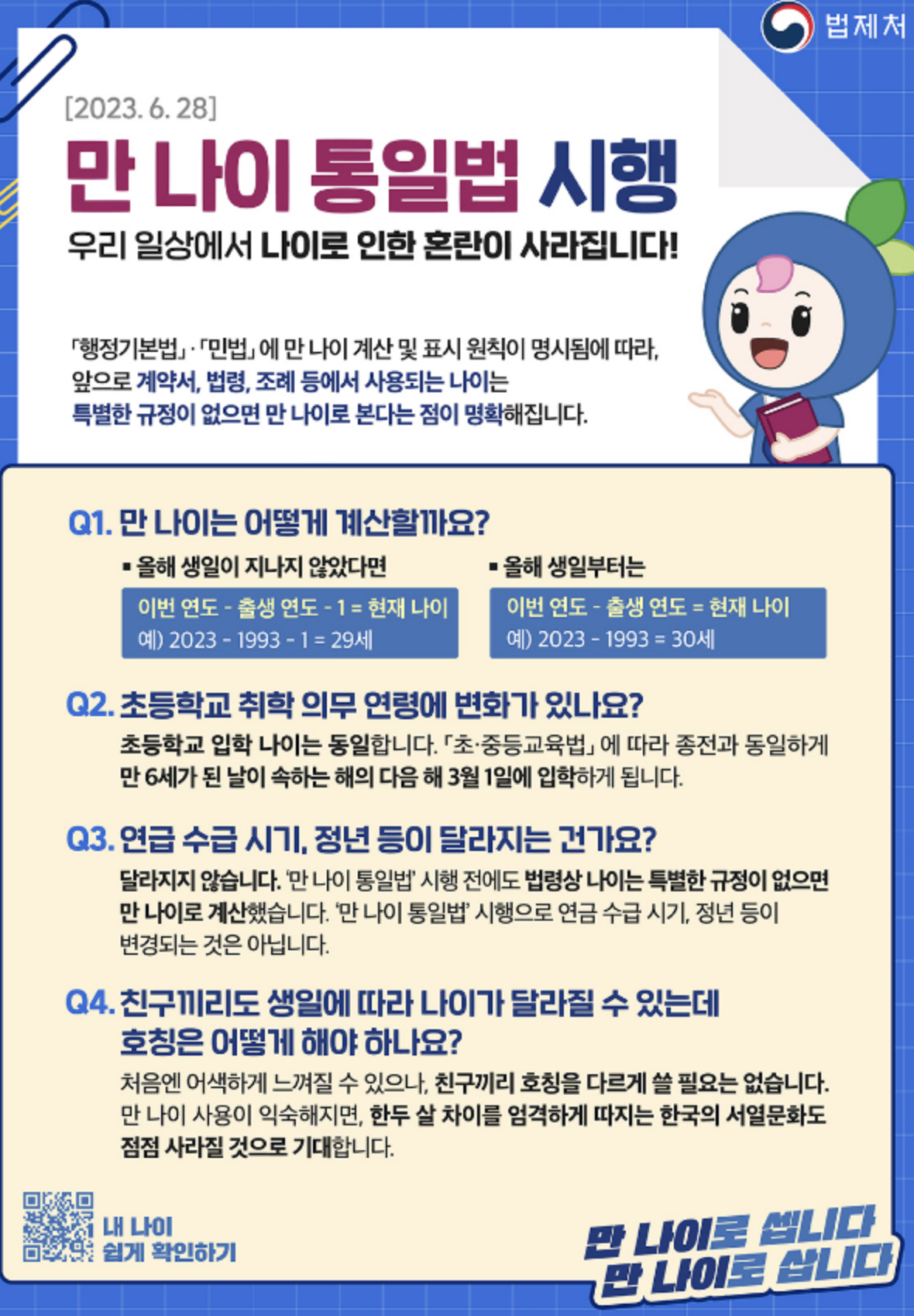 2023년 6월 28일부터 법적, 사회적 나이를 만 나이로 통일하는 제도가 시행됩니다.