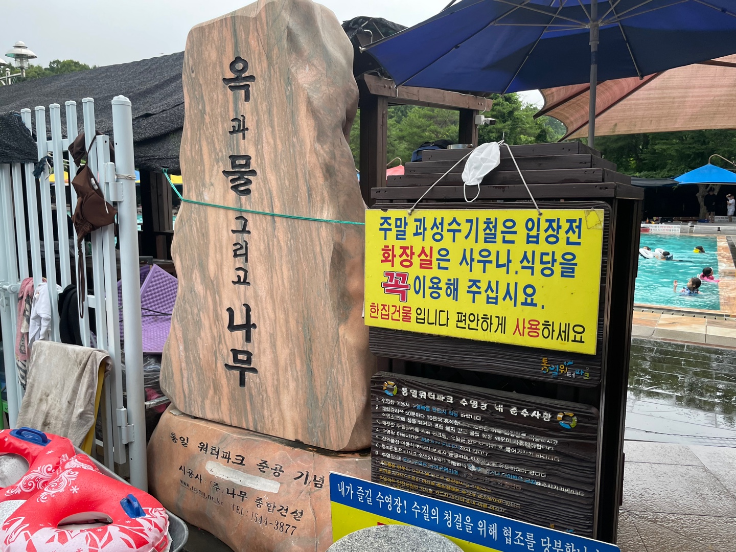 통일워터파크는 물이 깨끗해서 많은 분들이 오시는데 더 중요한건 취사가 가능하다는 점입니다. 취사가 가능해서 거의 모든 분들이 고기를 구워 먹는다고 볼 수 있어요.
