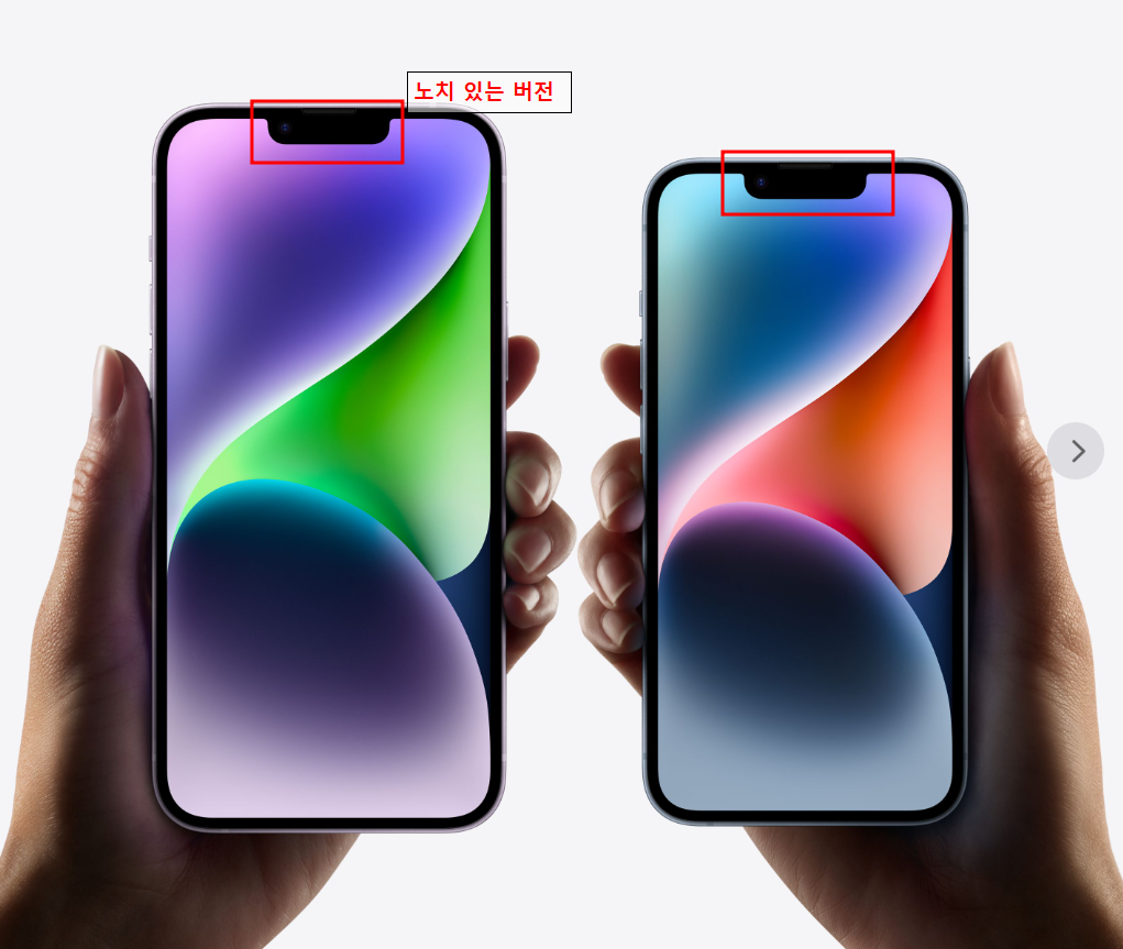 전 모델에 화면 상단의 노치가 사라진다. 아이폰 14 프로와 프로 맥스에만 탑재했던 다이내믹 아일랜드가 전 모델로 확대될 것으로 보인다.
