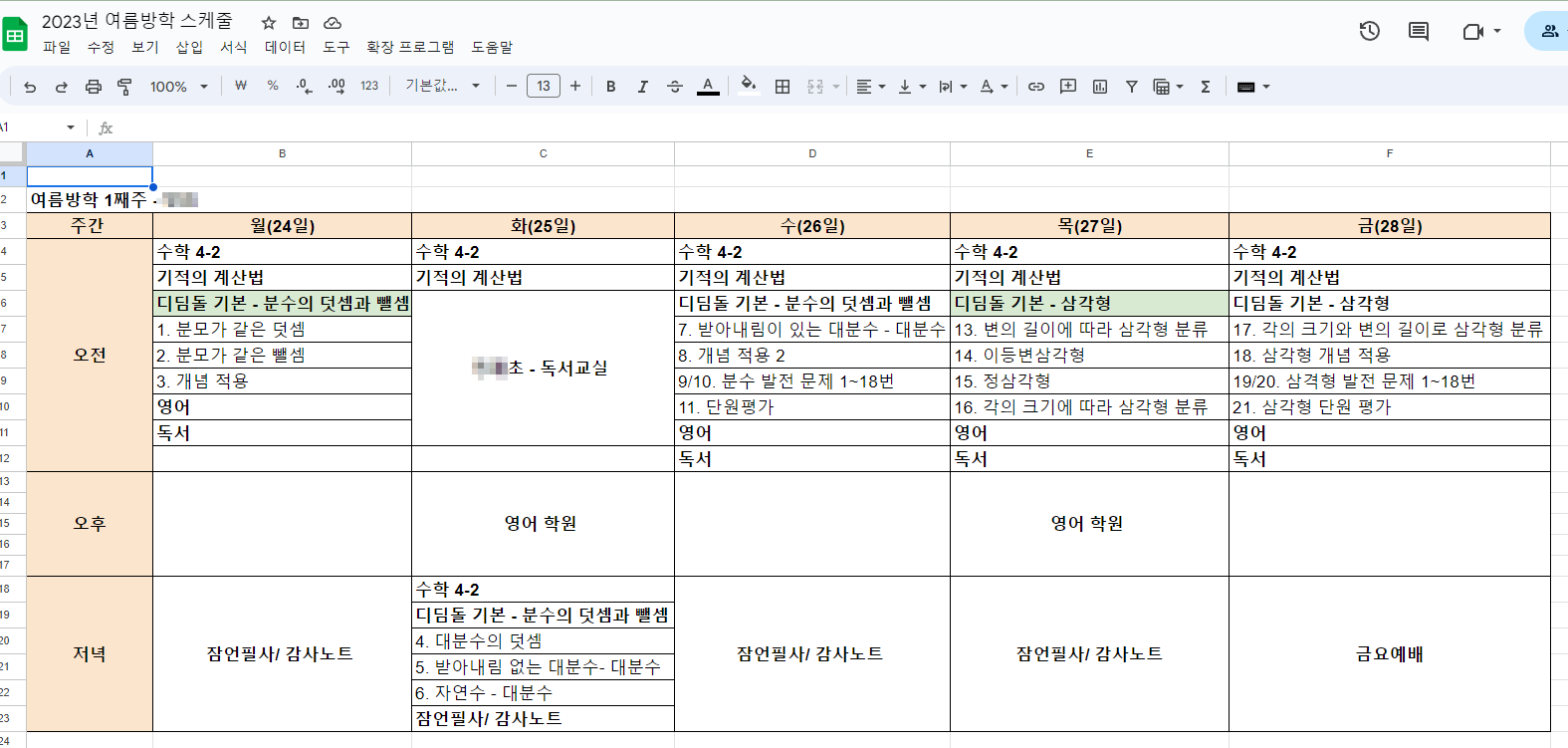 여름방학 스케줄표