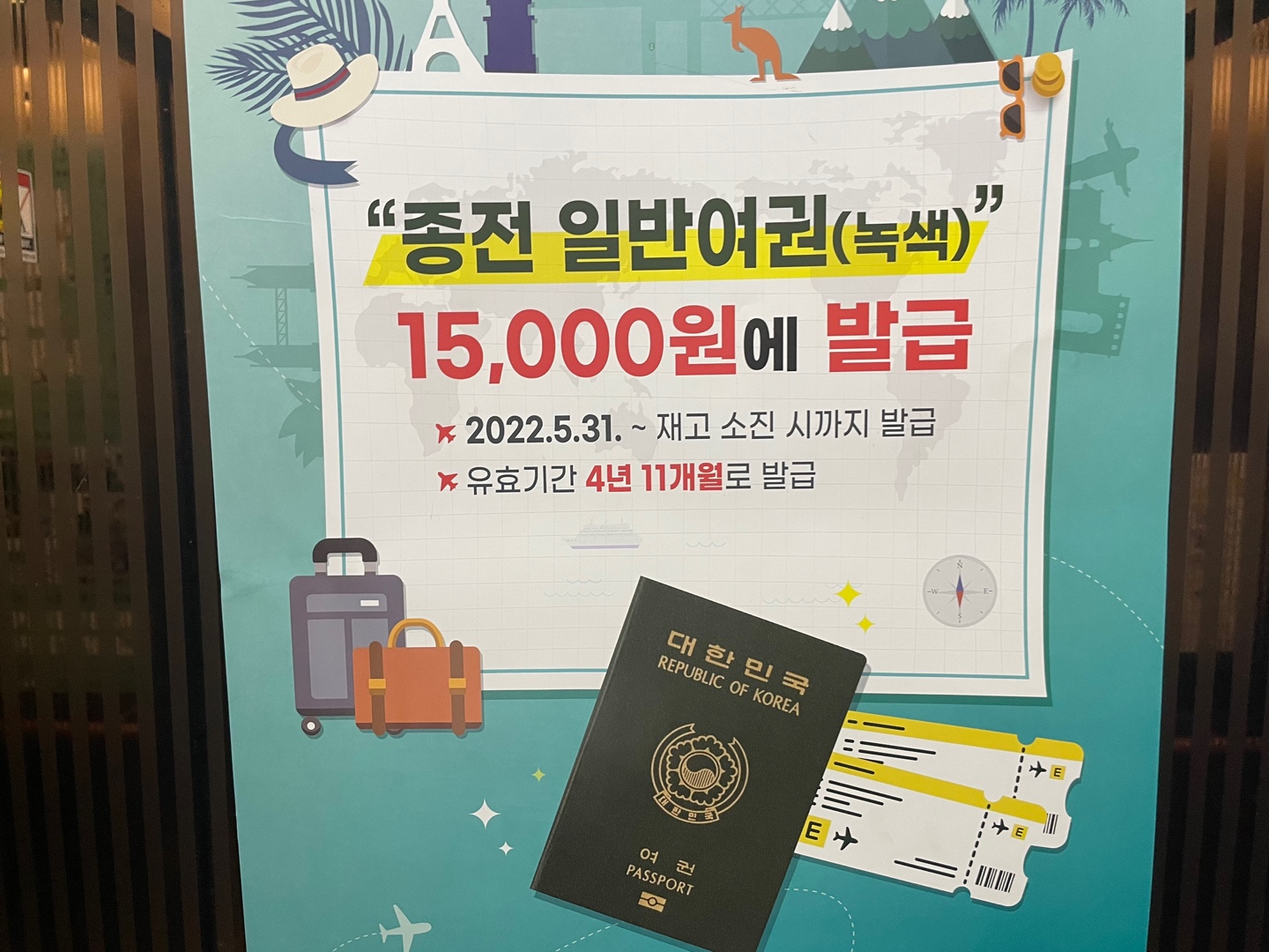 ※미성년자는 여권 사용 기간이 최대 5년이므로 기존 녹색여권 발행이 가능하며 비용은 15,000원입니다.