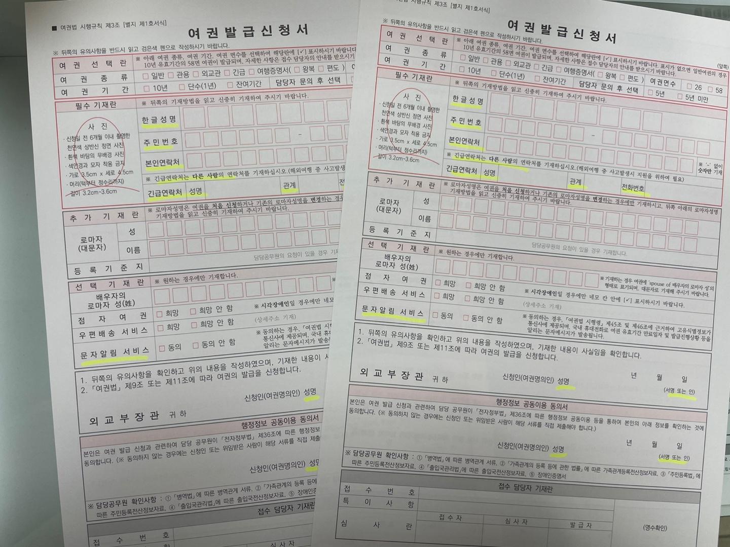 - 여권발급신청서