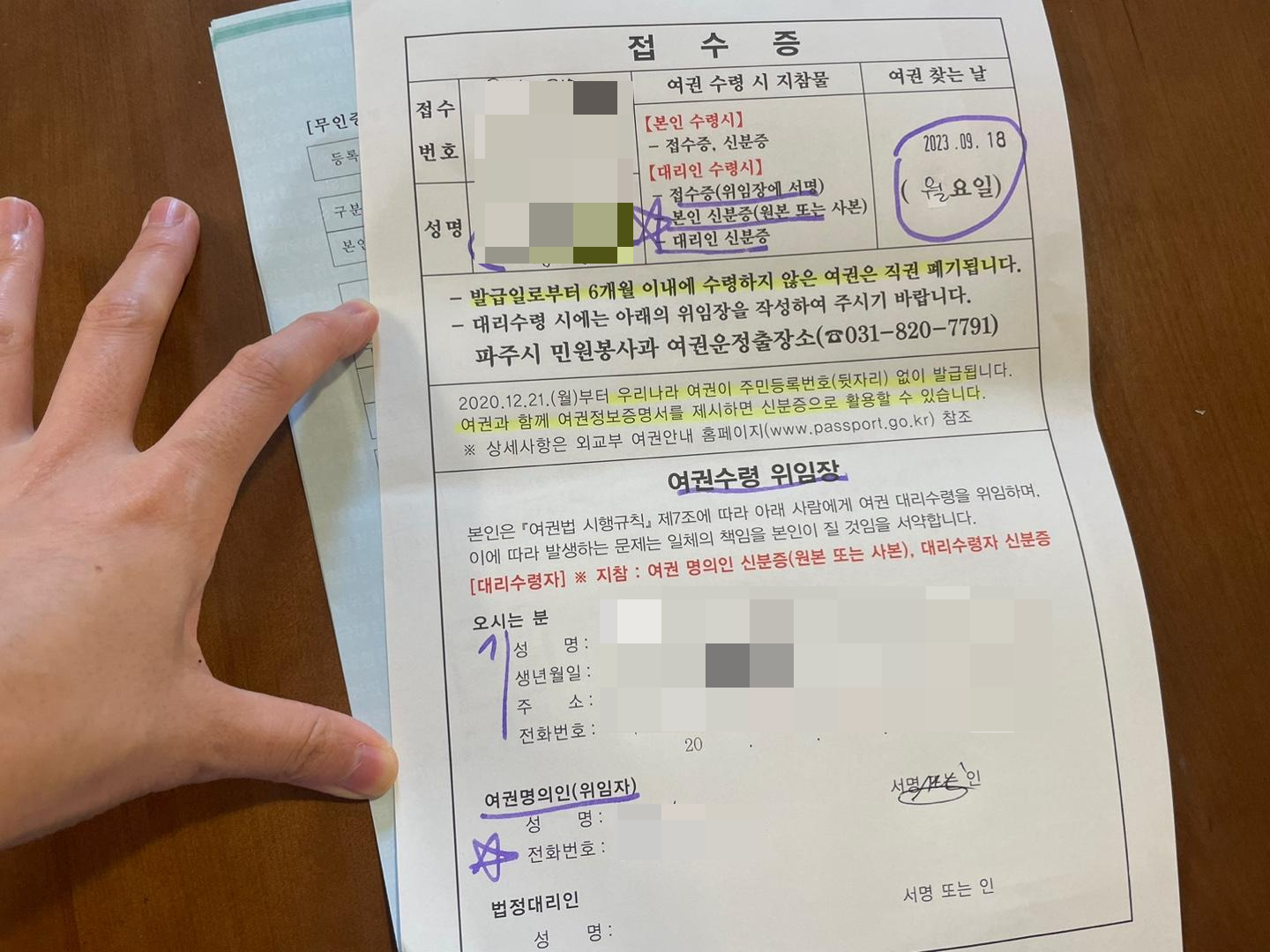 - 접수증(위임장에 서명)