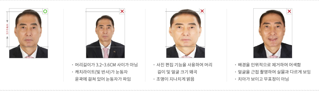 ▶본인이 직접 촬영한 사진은 여권사진 규격에 적합한 경우에만 사용 가능