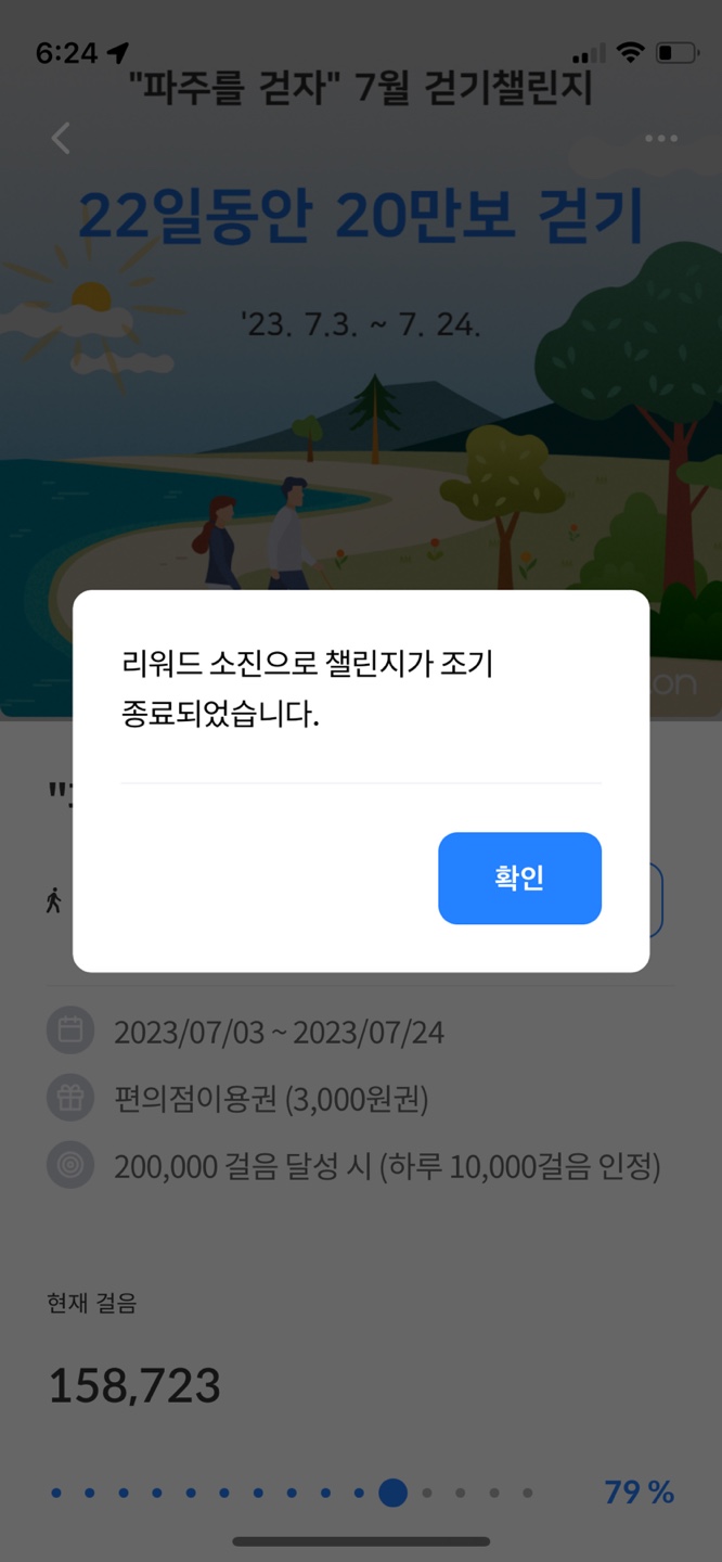 근데 어랏? 24일까지 마감인데 리워드 소진으로 종료가 되었다고 워크온 어플에 알림이 떴다. 이게 무슨 말인지 전혀 모르겠지만 여하튼 나 의지와 상관없이 종료가 되었습니다?? 리워드 소진 그게 뭔데용???