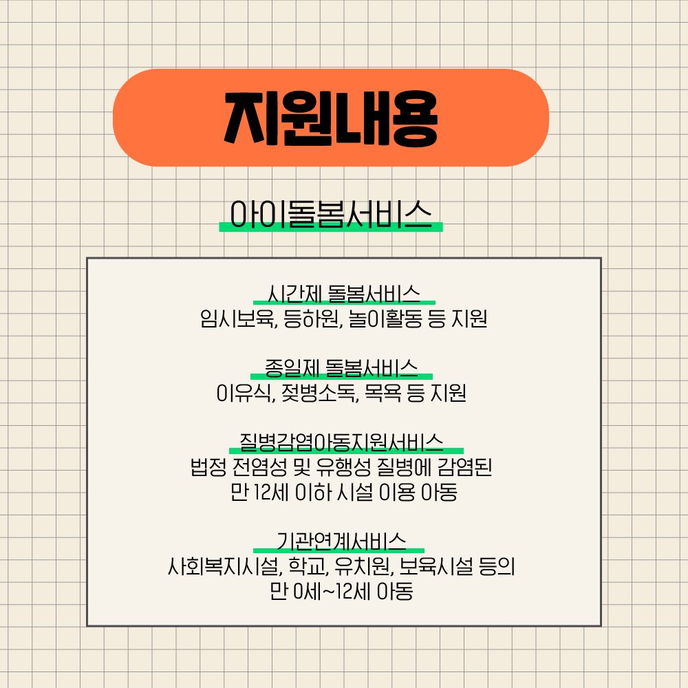 만 0세 ~12세 아동을 대상으로 아이돌보미가 기관에