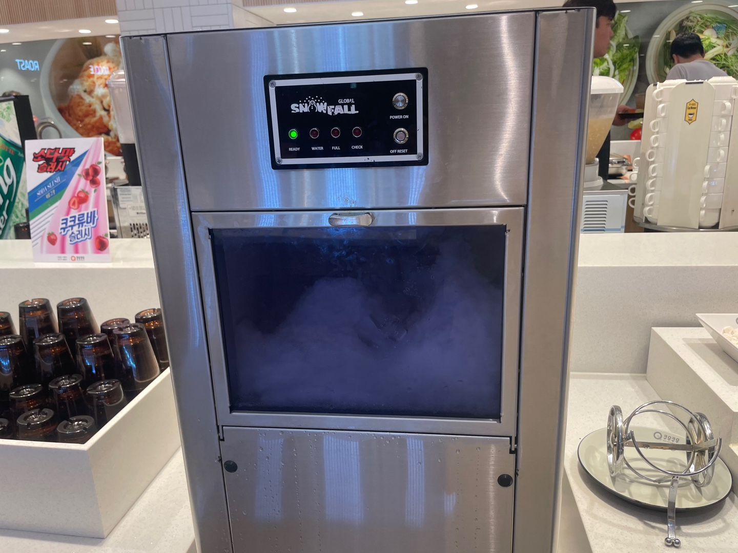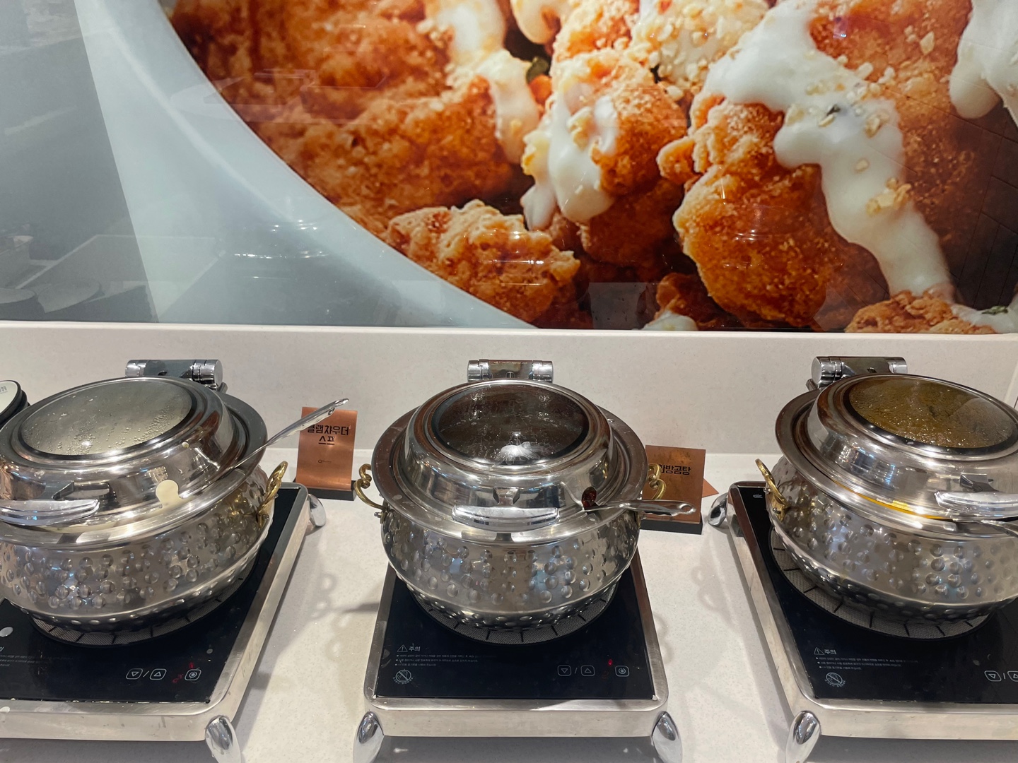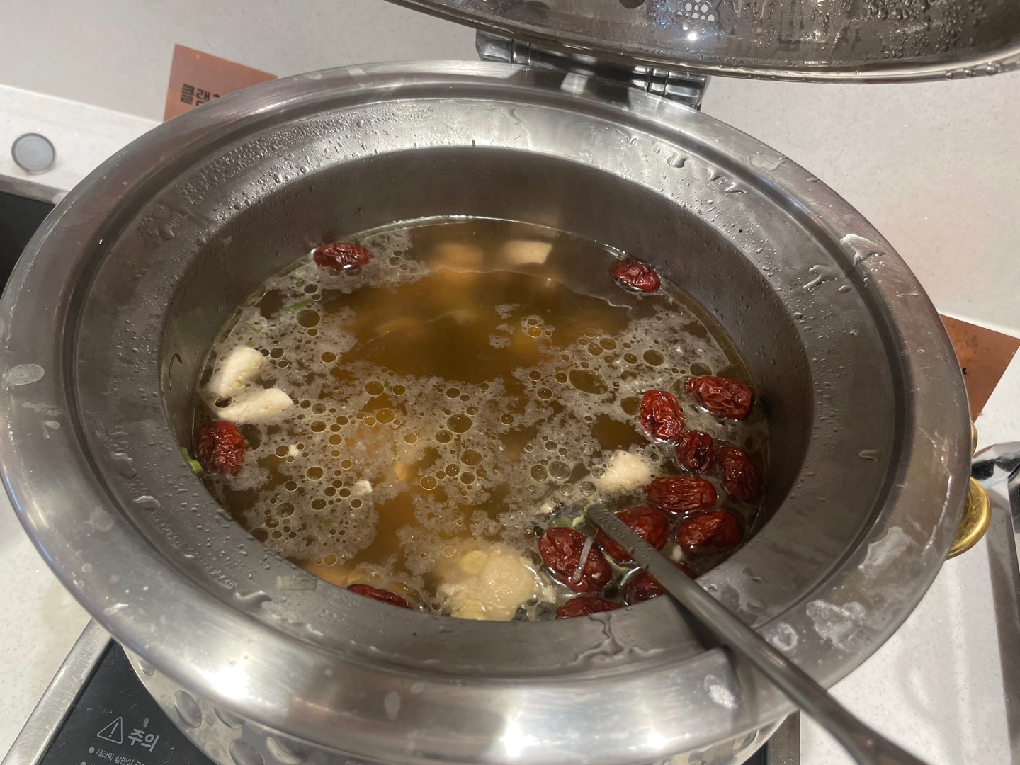 전자 화로가 있어서 음식을 데워주고 있더라고요 음식을 따뜻하게 먹을 수 있어 좋지만 시각적인 면으로도 좋았다고 생각이 들었어요.