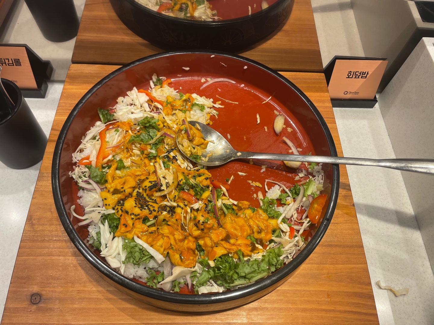 스시도 인기가 많았는데 어떤 분이 밥은 안 가져가고 눈치 보며 위에 회만 홀랑 가져가시더라고요; 그러지 맙시다 ㅜ