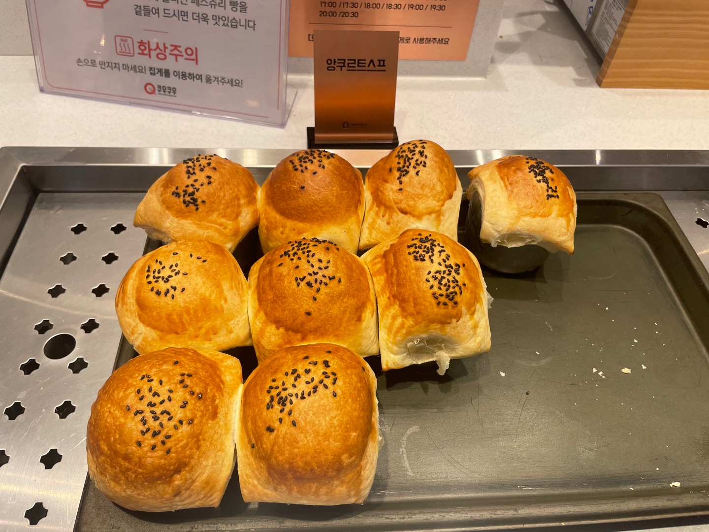 30분 간격으로 나오고 있어요. 제가 볼 땐 많았는데 순식간에 사라지더라고요. 맛은 비주얼에 비해 그닥? ㅎ