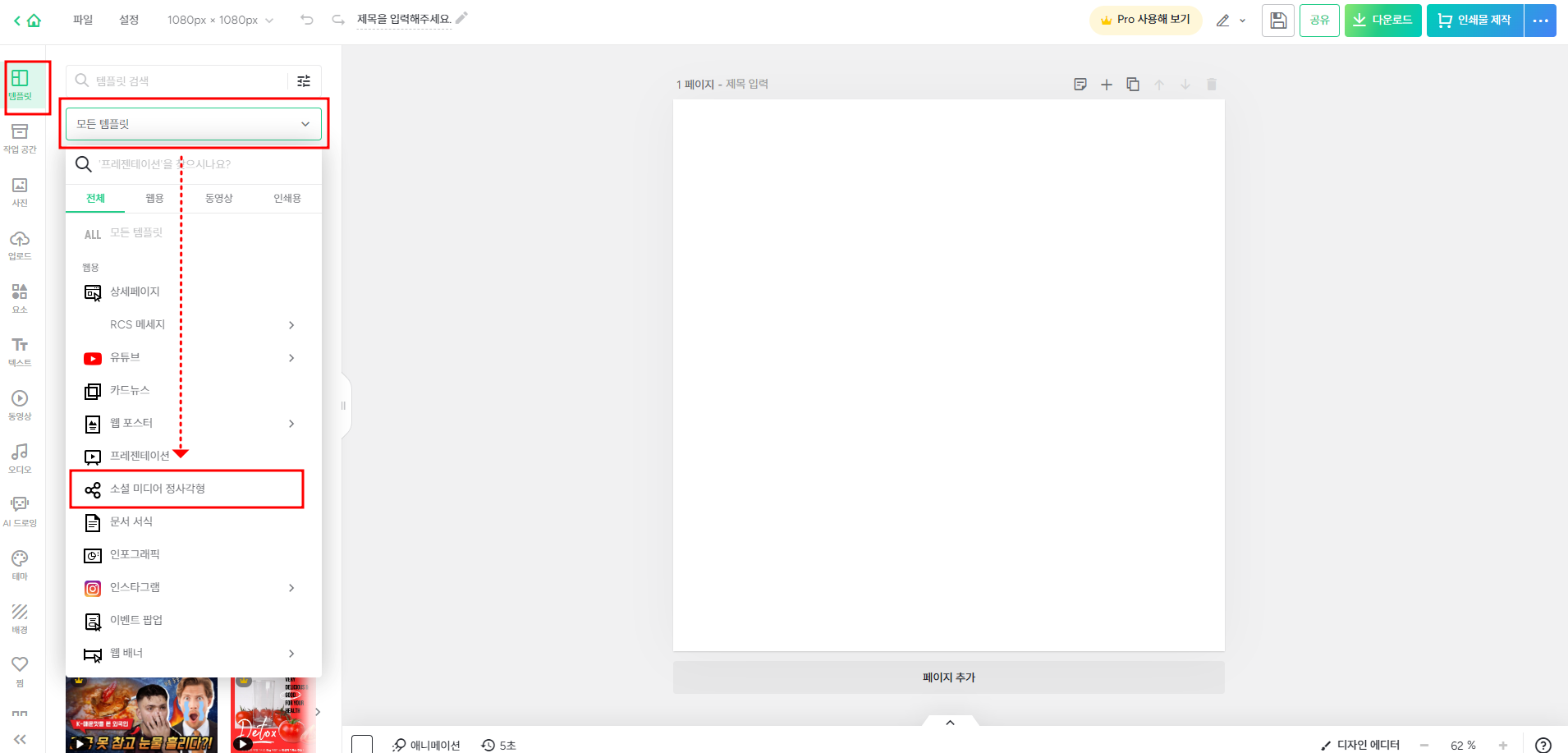 > 모든 템플릿 옆에 있는 아래 화살표 클릭