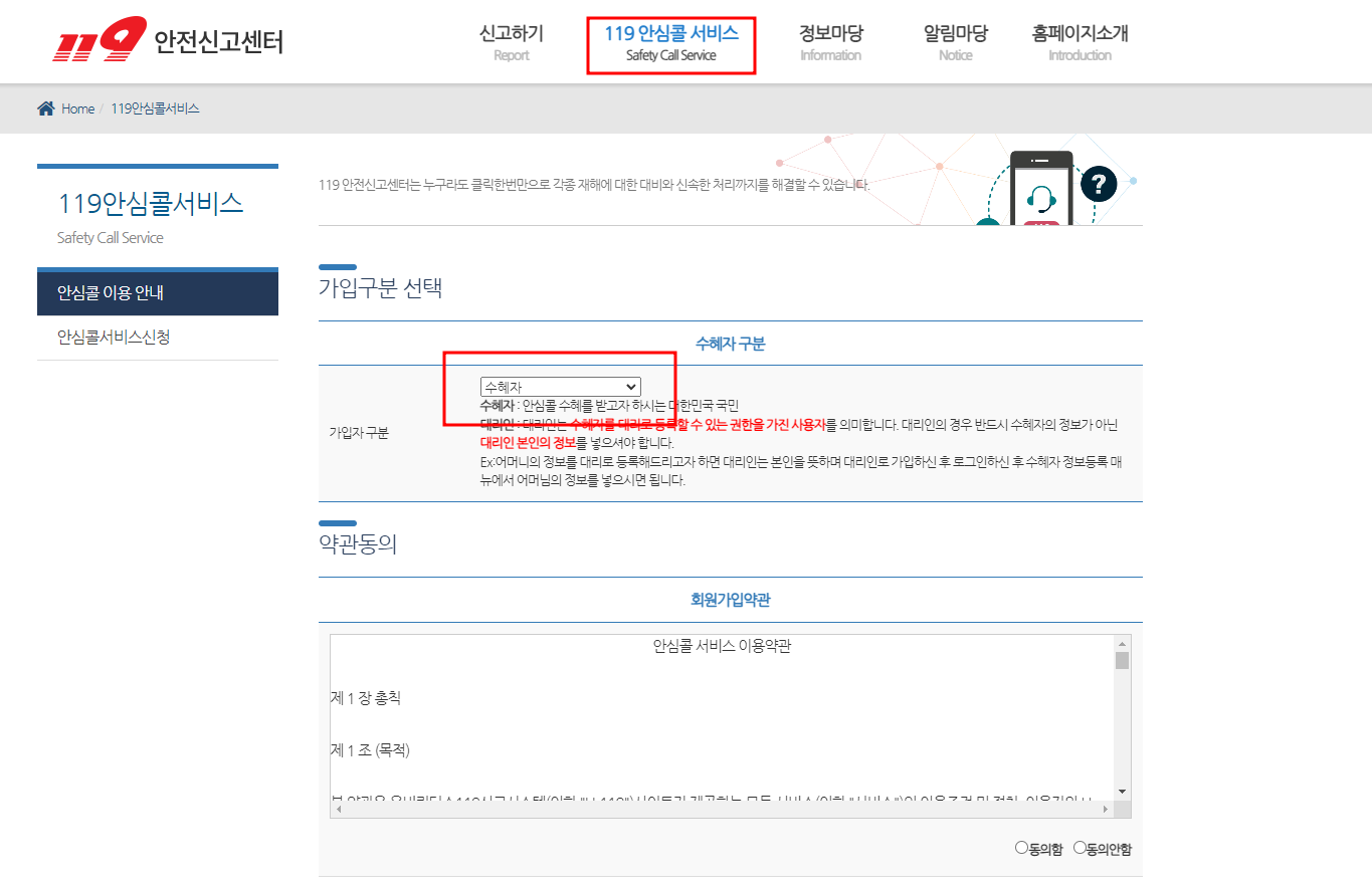 119 안심콜 가입방법