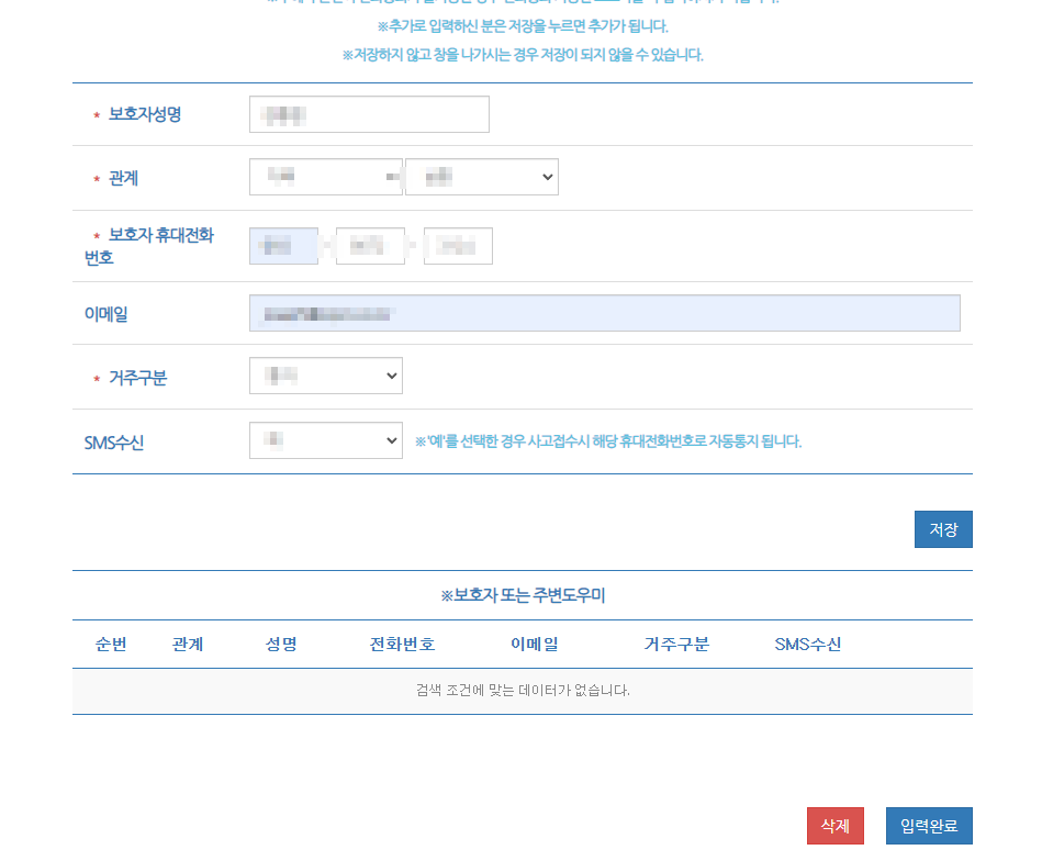 ▶ Step03. 보호자 및 주변도우미 정보 입력