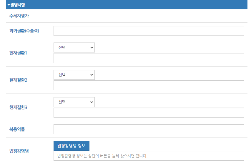 ▶ Step02. 병력정보입력